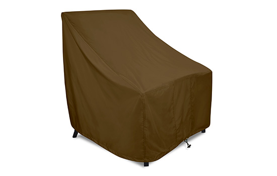 We offer four patio cover brands for high back chairs: Seasons, Portofino, Meridian, and Regent. All our patio covers are made using water resistant fabrics with a UV coating to offer the best protection against sun, rain, and snow.