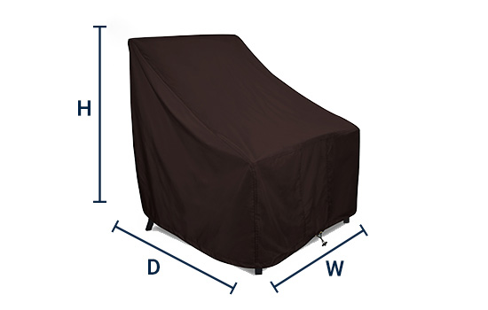 We offer High Back Patio Chair Covers that fit chairs 34"H x 25.5"W x 33.5"D in size. These high back chair covers are easy to install with an adjustable shock cord in the hem that secures the cover snugly so it won’t fly off in storms.